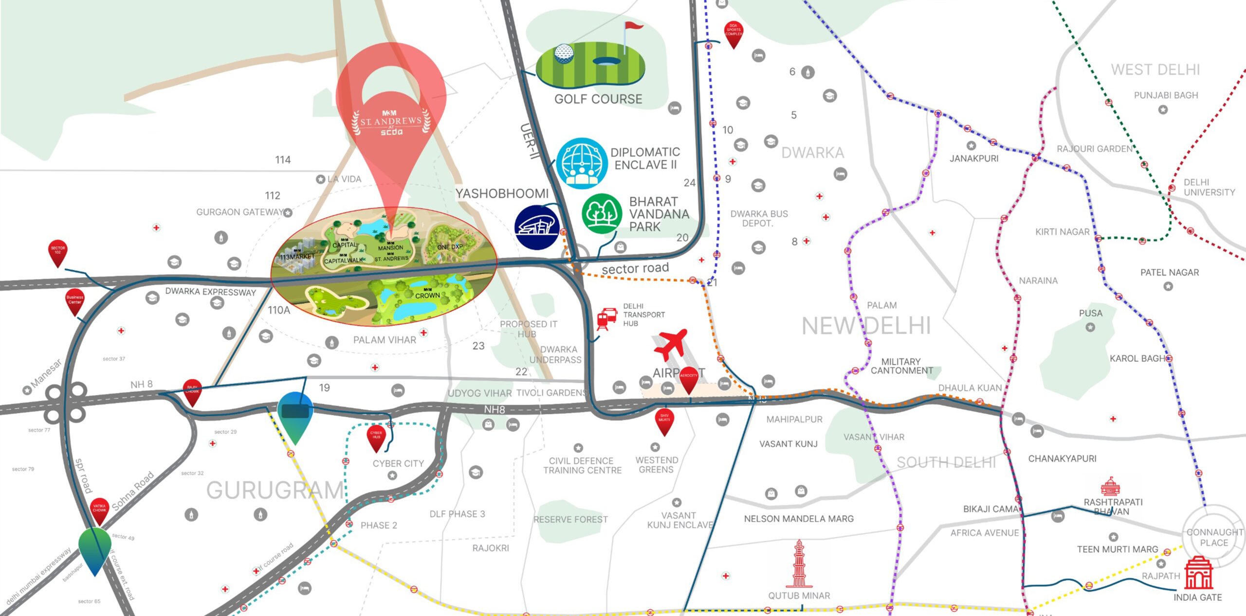 Rising tall at SCDA – Smart City Delhi Airport, M3M St. Andrews is more than a residence, it’s an icon of global living.